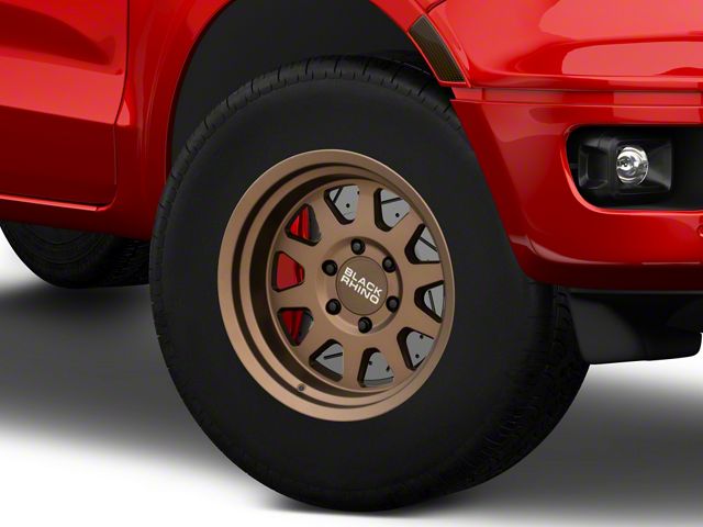 Application. This Black Rhino Stadium Matte Bronze 6-Lug Wheel; 17x9.5; -18mm Offset, with a backspace of 4.542 Inch, 115.4mm and bolt pattern of 6 x 139.7mm (6 x 5.5-Inch), ensures optimal alignment and driving stability. It is designed to fit 2019-2023 Ranger models. Sold individually.
