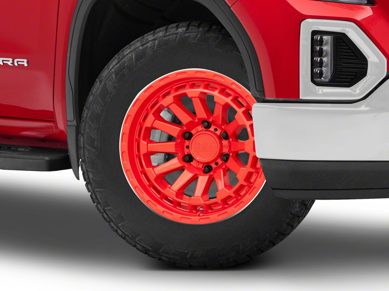 Application. This Black Rhino Raid Gloss Red 6-Lug Wheel; 20x9.5; -18mm Offset with a backspace of 4.542 Inch, 115.4mm and bolt pattern of 6 x 139.7mm (6 x 5.5-Inch) is meticulously engineered to enhance alignment and driving stability. It is designed to fit 2019-2026 Sierra 1500 models. Sold individually.