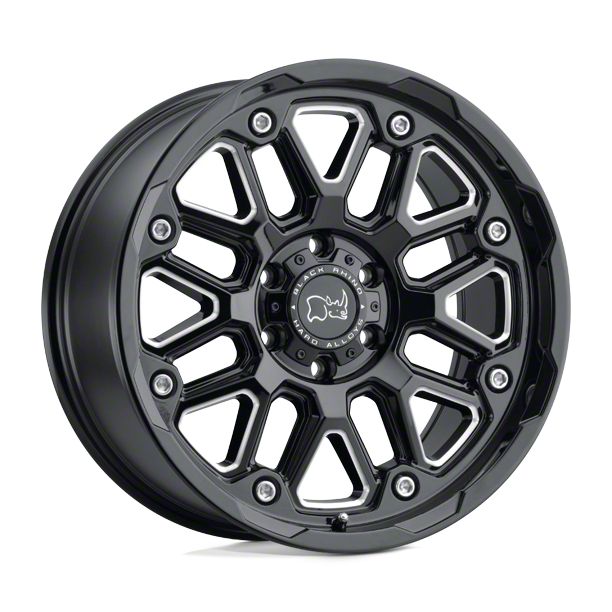 This 20x9.5 Black Rhino Hollister Gloss Black Milled 8-Lug Wheel is completed in a high-quality gloss black finish with steel milled accents that will make the wheel the envy of everyone. There is a durable clear coat that protects against driving hazards.One-Piece Cast Aluminum Construction. This wheel is manufactured using gravity casting. Gravity casting is the process of pouring a molten aluminum alloy into a wheel mold or form utilizing the earth's own gravity to help fill the mold. The result is a strong, durable wheel that has the same good looks as a more expensive wheel, at a fraction of the price.