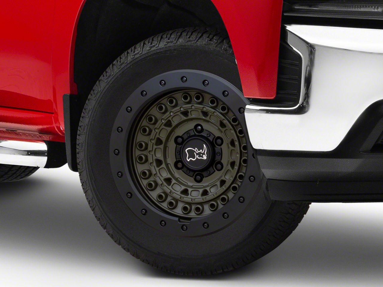 Application. The Black Rhino Barricade Olive Drab Green with Black Rock Guard 6-Lug Wheel; 20x9; 0mm Offset, with a backspace of 5 Inch, 127mm and a bolt pattern of 6 x 139.7mm (6 x 5.5-Inch), is designed to enhance alignment and stability for a smooth driving experience. Specifically tailored to fit 2019-2026 Silverado 1500 models, it ensures a perfect blend of style and functionality. Sold individually, this wheel is an ideal upgrade for your vehicle.