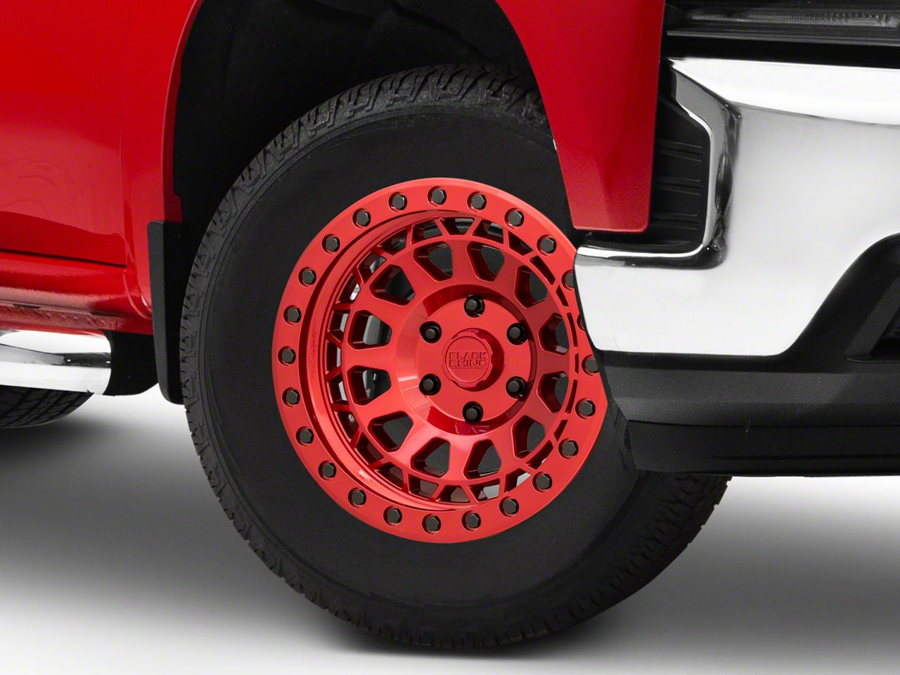 Application. This Black Rhino Primm Candy Red with Black Bolts 6-Lug Wheel; 18x9.5; -12mm Offset, with a backspace of 4.778 Inch, 121.4mm; and bolt pattern of 6 x 139.7mm (6 x 5.5-Inch), is designed to fit the 2019-2026 Silverado 1500 . The precise specifications of the wheel ensure proper alignment and driving stability, perfectly complementing the vehicle's model. Sold individually.