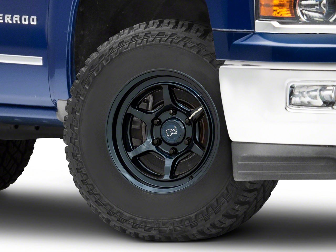 Application. This Black Rhino Shogun Gloss Midnight Blue 6-Lug Wheel; 17x9; -38mm Offset with a backspace of 3.52004 Inch, 89mm and bolt pattern of 6 x 139.7mm (6 x 5.5-Inch) ensures impeccable alignment and driving stability. It's designed to fit the 2014-2018 Silverado 1500 models, sold individually.