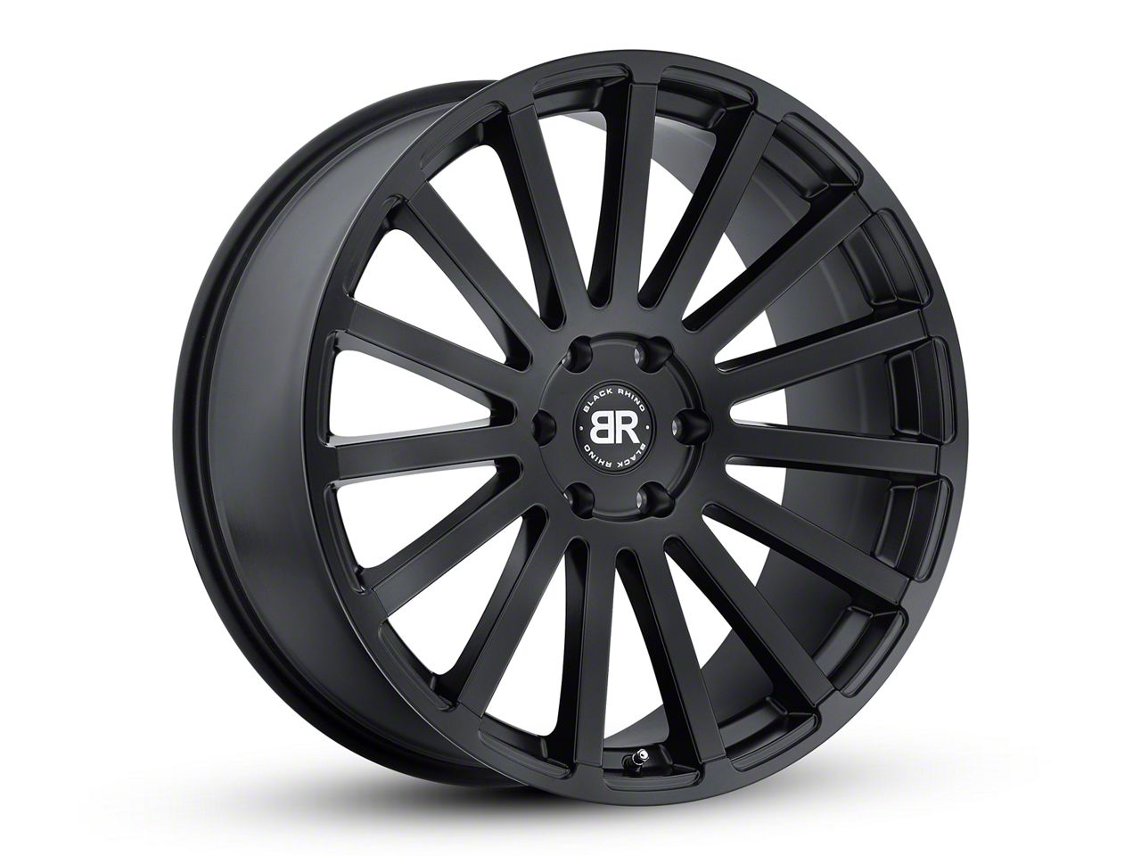 Blacker than Black. The Black Rhino Spear Matte Black 6-Lug Wheel - 20x9 for the 2014-2018 Chevy Silverado 1500 conjures imagery of darkness and wickedness with its all-black finish, clean 15-spoke design, and minimalistic but hard hitting Black Rhino logo emblazoned in the center.