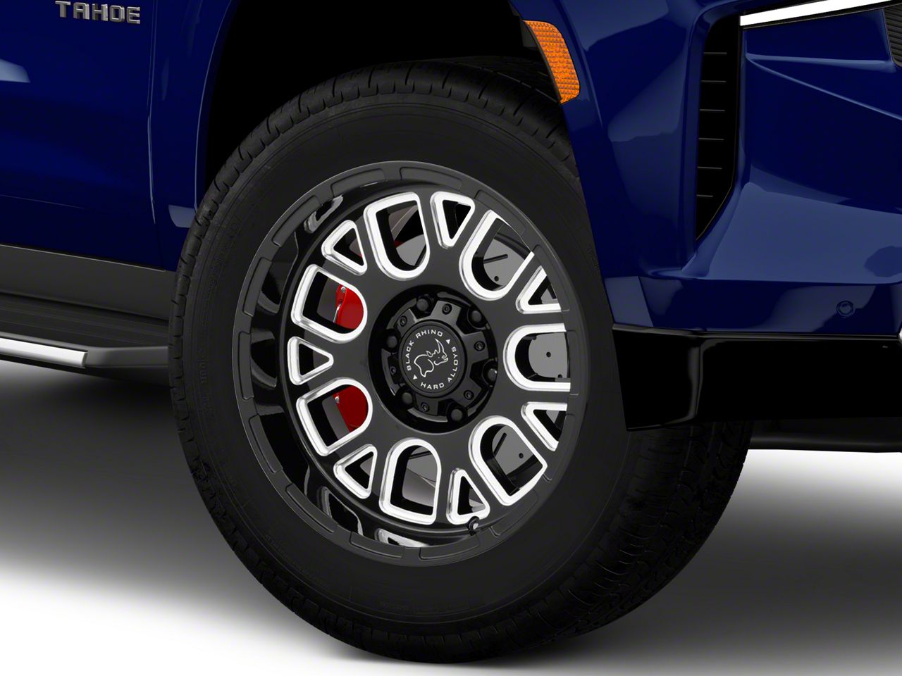 Application. This Black Rhino Pismo Gloss Black Milled 6-Lug Wheel; 20x9.5, with a backspace of 5.487 Inch, 139.4mm and a bolt pattern of 6 x 139.7mm (6 x 5.5-Inch), is designed to enhance alignment and driving stability. It's specially designed to fit the 2021-2026 Tahoe models, sold individually.
