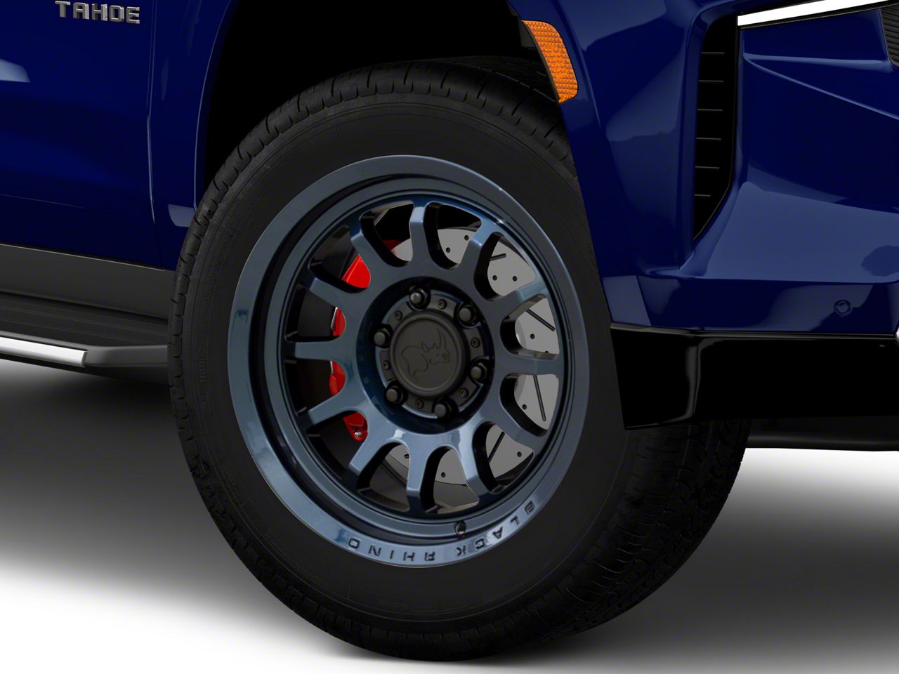 Application. This Black Rhino Rapid Midnight Blue 6-Lug Wheel; 20x9.5; -18mm Offset, with a backspace of 4.541 Inch, 115.3mm; and bolt pattern of 6 x 139.7mm (6 x 5.5-Inch), is designed to fit the 2021-2026 Tahoe . The precise specifications of the wheel ensure proper alignment and driving stability, perfectly complementing the vehicle's model. Sold individually.