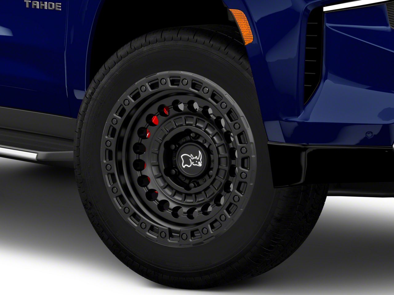 Application. This Black Rhino Sentinel Matte Black 6-Lug Wheel; 20x9.5; 12mm Offset with a backspace of 5.723 Inch, 145.4mm and bolt pattern of 6 x 139.7mm (6 x 5.5-Inch) ensures impeccable alignment and driving stability. It's designed to fit the 2021-2026 Tahoe models, sold individually.