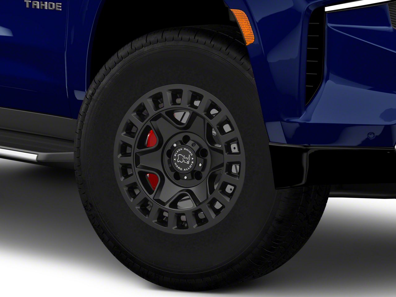 Application. This Black Rhino York Matte Black 6-Lug Wheel; 17x9; -12mm Offset with a backspace of 4.528 Inch, 115.1mm; and bolt pattern of 6 x 139.7mm (6 x 5.5-Inch) contributes to impeccable alignment and driving stability. Designed to fit 2021-2026 Tahoe models, sold individually.