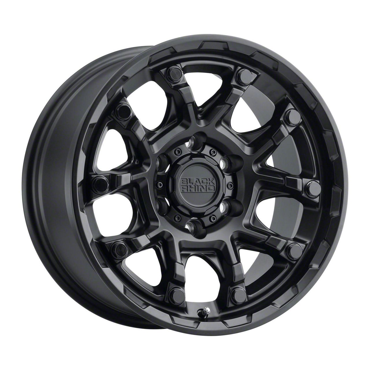 Black Rhino Ark Matte Black 6-Lug Wheel; 17x8.5; 0mm Offset. The Black Rhino Ark Matte Black 6-Lug Wheel offers a striking balance of style and refinement. Its unique design accentuates the vehicle's aesthetic, while the premium construction underscores its robust nature. This wheel is a perfect choice for those seeking both elegance and a strong visual statement.