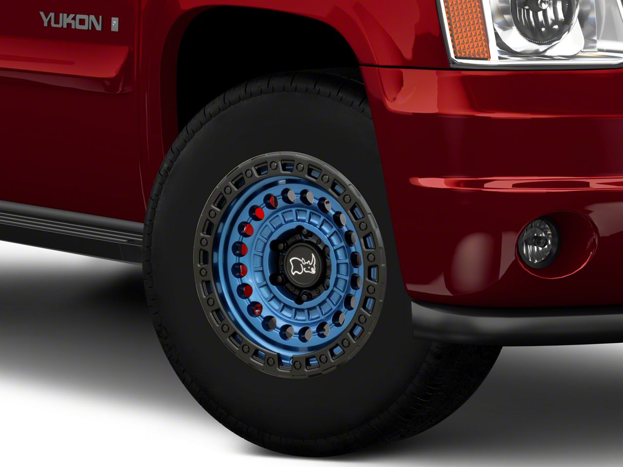 Application. This Black Rhino Sentinel Cobalt Blue with Black Ring 6-Lug Wheel; 17x8.5; -10mm Offset with a backspace of 4.357 Inch, 110.7mm and bolt pattern of 6 x 139.7mm (6 x 5.5-Inch) ensures impeccable alignment and unmatched driving stability. Specifically designed for 2007-2014 Yukon models, each wheel is sold individually.
