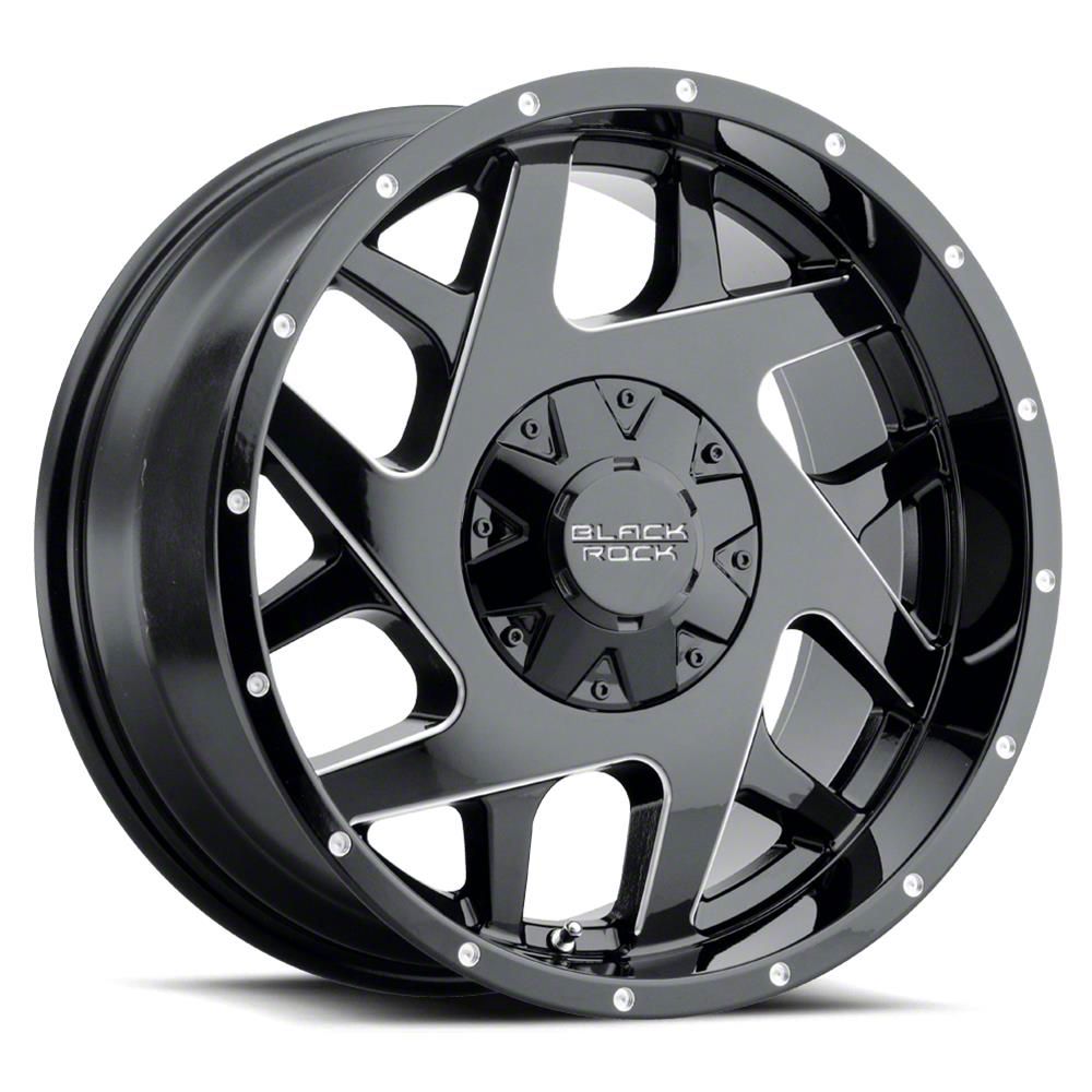 This 20x9 Black Rock Wheels Fury II Gloss Black Milled 6-Lug Wheel is completed in a high-quality gloss black finish with steel milled accents that will be the envy of everyone. There's a durable clear coat that protects against driving hazards.
