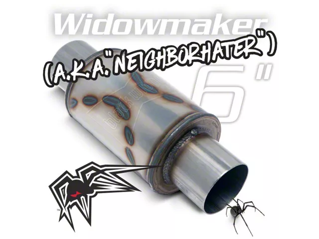 Application. The Black Widow Exhaust Neighborhater Series Center/Center Muffler offers universal fitment.