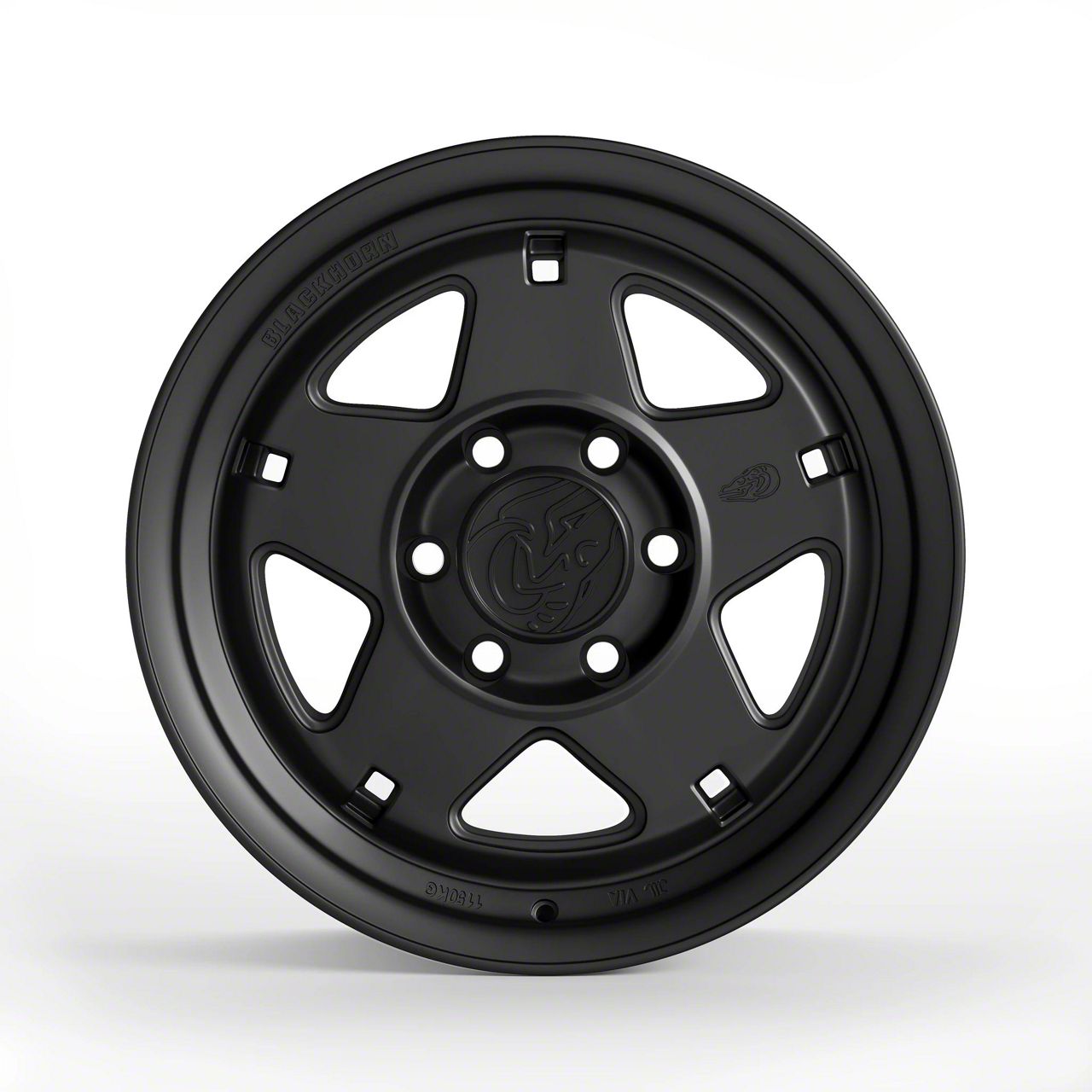 The 17x8.5 Blackhorn Offroad NS5 Obsidian Matte Black 6-Lug Wheel; 17x8.5; 25mm Offset is completed in a matte black finish that will make everyone green with envy. For added protection and good looks, this wheel features a durable clear coat that is tough enough to stand up against the hazards of everyday driving.