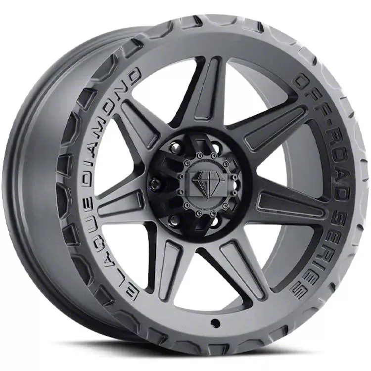 Blaque Diamond Wheels BD-O102 Matte Textured Black 6-Lug Wheel; 18x9; -12mm Offset. The Blaque Diamond Wheels BD-O102 Matte Textured Black 6-Lug Wheel; 18x9; -12mm Offset features a sleek and modern design that enhances the overall aesthetic of any vehicle. Its brushed gunmetal finish adds a touch of sophistication and complements various vehicle styles. This wheel's premium construction ensures durability and a robust appearance.