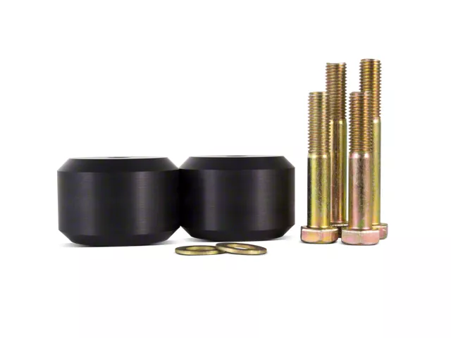 Features High-Quality Coil Spring Spacers. The front coil spring spacers that are featured in this kit are made from high-quality steel. They also come with a durable black, powder-coated finish, which helps increase their strength and gives them a sleek off-road look. As a result, the spacers can endure the elements and keep up with your vehicle’s extreme off-roading applications.