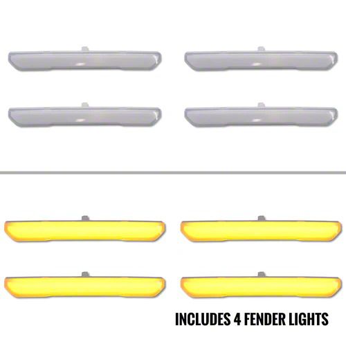 Dynamic Sequential Amber Turn Signals. Equipped with sequential amber LEDs, the Boost Auto Parts Sequential Switchback Signal and Running Light Fender Lights; Frosted Lens 2020-2023 Sierra 2500 HD deliver a flowing turn signal effect. This dynamic lighting enhances visibility while adding a custom, eye-catching detail to the vehicle’s appearance.