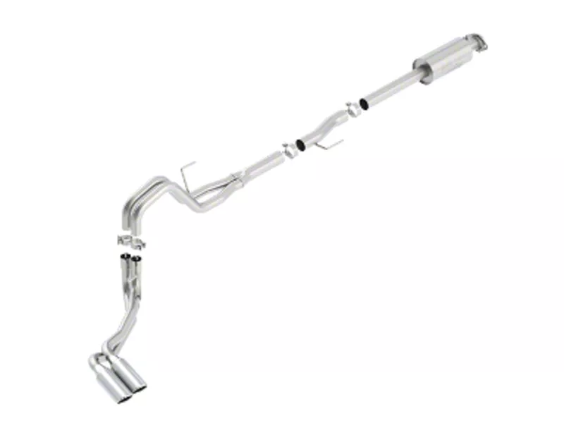 Serious Power. Unlease serious power improvements with this Borla ATAK cat-back exhaust kit installed on your F-150 pickup. That's because this kit uses dual tailpipes and an S-configuration instead of bends. The result is smooth flowing exhaust that isn't kinked at any point in the journey out your truck. Without a slowdown for the exhaust fumes,, your engine will run more efficiently overall, leaving you with a more powerful truck.