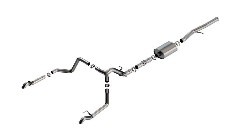 Application. The Borla ATAK Dual Exhaust System with Turn Down Pipes; Rear Exit fits all 2022-2023 GMC Sierra 1500 AT4X models.