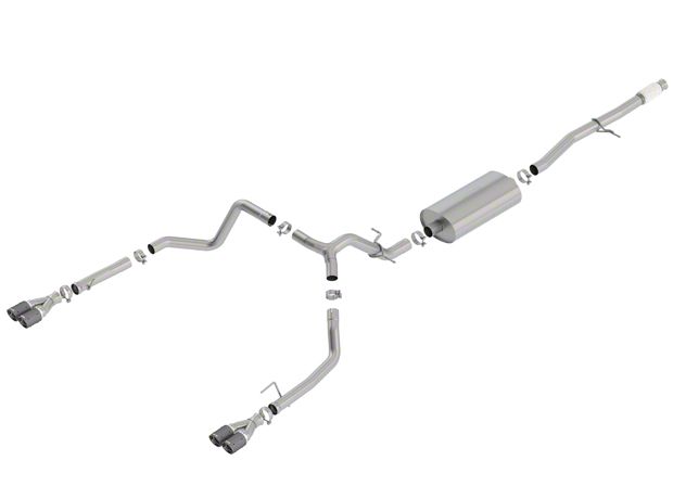 Mellow Aggression. Upgrade your ’19 to ’20 Sierra 1500 truck’s exhaust sound with the Borla Touring Rear Exit Dual Exhaust System with Carbon Fiber Tips. This cat-back exhaust transforms your truck’s run-of-the-mill sound into a deep, throaty growl that’s moderate enough for a quiet neighborhood. Best of all, this upgraded exhaust sound is completely drone-free in your cabin, keeping your drives pleasant.