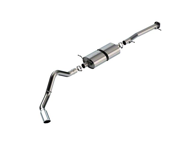 Description. EXCEPT vehicles with Dual Rear Wheels. This system features a 5" bright chrome on T-304 stainless steel tip. BORLA® Cat-Back™ and Axle-Back exhaust systems feature patented straight-through and multi-core technology designed to unleash hidden horsepower. Increased exhaust velocity adds power, driving excitement, fuel economy, and the distinctive BORLA® Sound of Power respected by motoring enthusiasts everywhere.