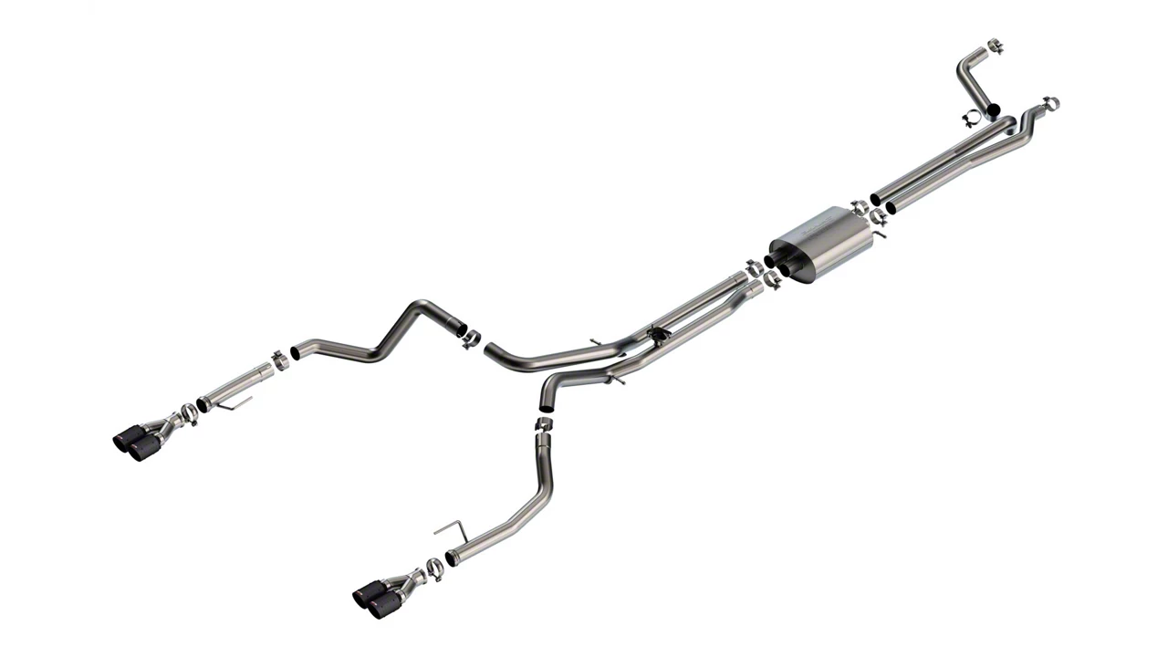 Application. This Borla S-Type Exhaust System fits 2024–2026 6.2L Chevrolet Silverado 1500 models equipped with a factory dual exhaust system. Excludes ZR2 models. The aggressive tone and enhanced flow help boost engine efficiency, throttle response, and style all in one high-performance package.
