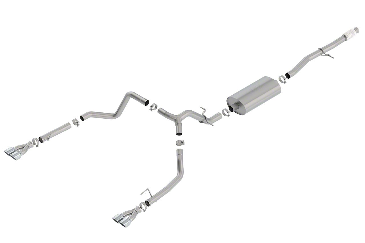 State-of-the-Line Engineering. Borla's Exhaust Systems are made from racing-quality T-304 stainless steel pipes for better strength and long-term rust repulsion. This Catted Exhaust has uniform mandrel-bent 2.75-inch diameter pipes and a distinct touring muffler which greatly outmatches your Silverado's stock exhaust system. For added style, this system features a set of twin 3.5-inch black chromed 304 stainless steel exhaust ends, burnished and glistening for extra flair on the road.