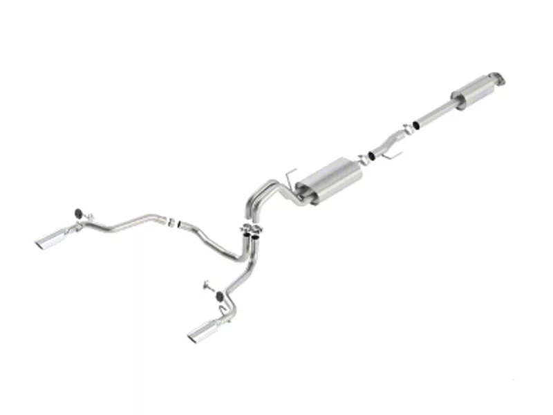 Power Like Never Before. The sound and power of your truck need to be balanced for a truly menacing tone. With the use of the Borla Stinger ""S-Type"" Split Rear Exit Cat-Back Exhaust System, you will get the power you deserve. The design allows for a straight-through, free flowing exhaust that will return horsepower and torque behind your back wheels. You may even notice an increase in your fuel economy as well.