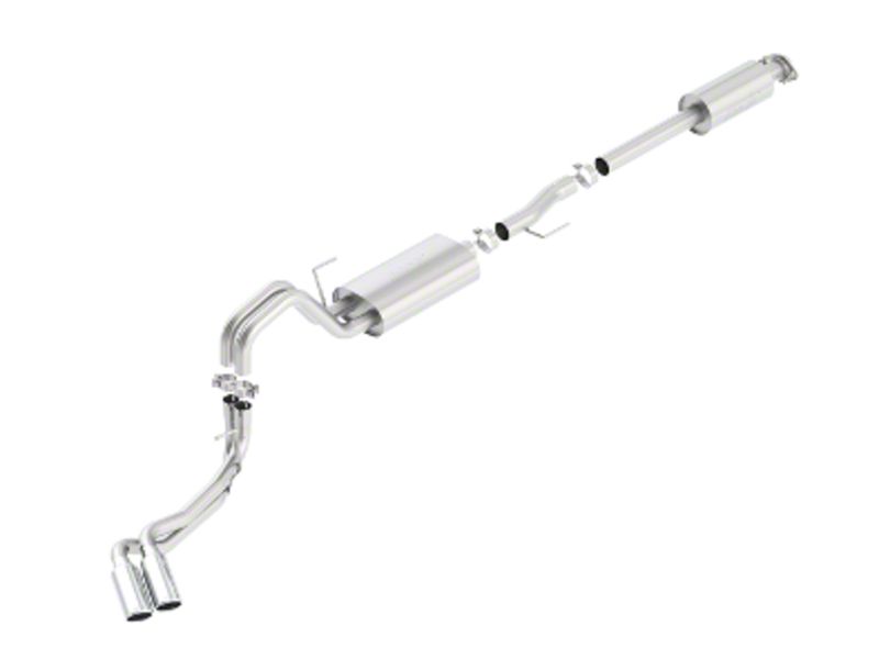 Dual Pipe Performance. Stock exhaust kits don't have the space to let exhaust flow properly. Instead you get backflow that actually slows things down and cramps your engine performance slightly. This Borla Touring cat-back exhaust kit features dual 2.25" pipes that give the fumes plenty of space to move around. That means that your engine is not cramped and you get peak horsepower and torque. You'll enjoy improved performance with the kit installed and you'll be amazed at how powerful your 3.5L Ecoboost engine is.