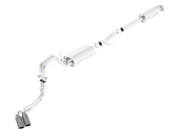 Direct Fitment. Made to be simple, the Borla Touring Dual Side Exit Cat-Back Exhaust with Black Chrome Tips is made to be bolted onto your truck - nice and easy - onto factory holes and hangers. This means you won't need to cut, weld, or drill to make this system fit on your truck. All the hardware you need is included as well, allowing you to install it immediately upon delivery.