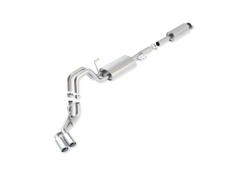 Built For Durability. Stainless steel tubing (3in) went into the design of this exhaust system. This makes for a highly efficient exhaust flow that is unmatched by factory exhaust systems. Also implemented into the design of this exhaust is a mid pipe resonator. This helps to give this exhaust system that raspy sound people have come to expect from Borla. The tip exits near your back passenger tire.