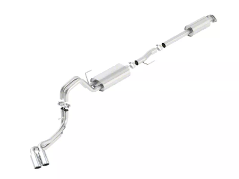 Show Your Power. Roar down the road and demonstrate your truck's power using this Borla Touring cat-back exhaust kit. It's designed to maximize performance and the sound of your ride all at the same time. This kit uses a dual set of 2.25" tail pipes along with a 3" mid-pipe and specialty muffler to bring out the rich depth of sound that you expect from an aftermarket exhaust kit worth the money.