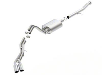 Power. Engineered with precision, this Borla S-Type Dual Exhaust System provides a distinctively deep and throaty sound that automotive enthusiasts crave. This aggressive acoustic profile is achieved through Borla's proprietary muffler technology, which fine-tunes the exhaust note without introducing drone at highway speeds. The result is a resonant, robust sound during acceleration, signaling the vehicle's enhanced power capabilities. This feature is particularly designed to appeal to those who value not just the performance, but also the auditory feedback of their vehicle’s powertrain. The sound quality maintains a pleasant tone, ensuring that it enhances the driving experience without overwhelming it, perfect for daily driving and performance uses alike.
