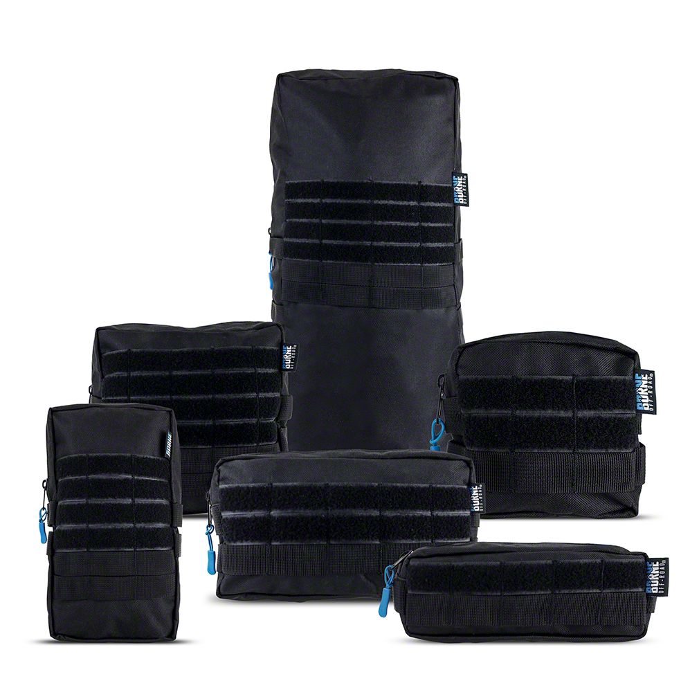 Customizable and Durable Storage Solution. The Borne Off-Road MOLLE Pouch Set provides a versatile storage system for off-road enthusiasts, campers, and everyday use. With six different-sized pouches, this set allows for easy organization and quick access to your gear.