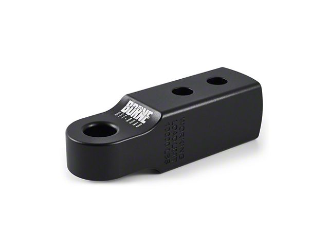 Description. If you own a truck, you know that you can never be too prepared to tow or recover a stuck vehicle. With this Borne Off-Road 2-inch hitch receiver shackle mount, your class 2 to class 4 hitch can double as a recovery point wherever you go. The billet 6061 aluminum construction is sturdy enough to stand up to 10,000 lbs. of pulling force. The chamfered eye prevents damage to synthetic lines or shackles and is suited for shackles with 7/8” pins or 3/4” soft shackles, including our Borne Off-Road D-Ring Shackles and Soft Shackles. The Borne Off-Road 2-in hitch receiver shackle mount features two hitch pin locations that allow the mount to be pulled out to clear larger bumpers or tucked in to maintain departure angle when not in use. For long-term storage, the shackle mount can be reversed and features a stylish chamfered end with the Borne Off-Road logo that compliments your vehicle’s off-road styling. We offer this hitch receiver shackle mount in four anodized colors to protect it from the elements: black, blue, red, and military-grade hard anodized. Like all our products, this Borne Off-Road 2-inch hitch receiver shackle mount is covered by our Mishimoto Lifetime Warranty.