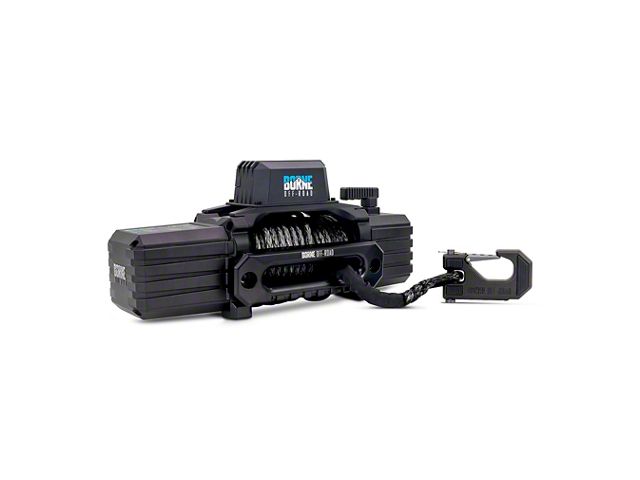 High-Performance Off-Road Winch. The Borne Off-Road 10,000 lb. Winch with Black Synthetic Rope is engineered to tackle the most demanding off-road conditions. Featuring a powerful pure copper motor and a durable 3-stage planetary gear system, this winch ensures reliable performance during recovery operations. The included 85-foot synthetic rope and alloy steel hook provide strength and durability, making it an essential tool for off-road enthusiasts. The advanced wireless remote offers exceptional range and reliability, allowing for precise operation in various situations.