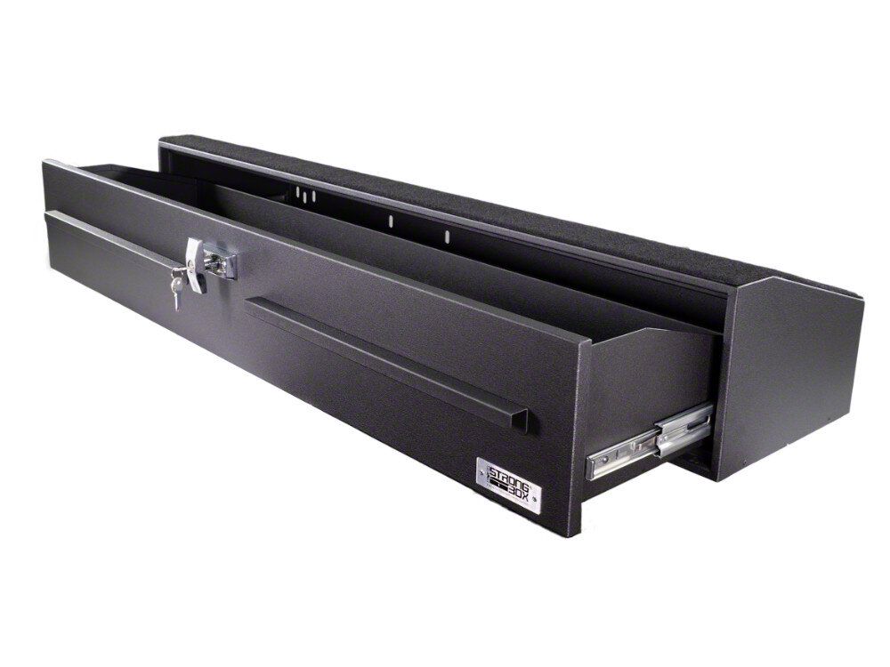 Lockable Drawer for Secure Valuables. Equipped with a reliable lock and key set, the BOSS StrongBox Under Seat Drawer System provides secure storage for important belongings. This feature adds peace of mind when leaving items inside the vehicle.