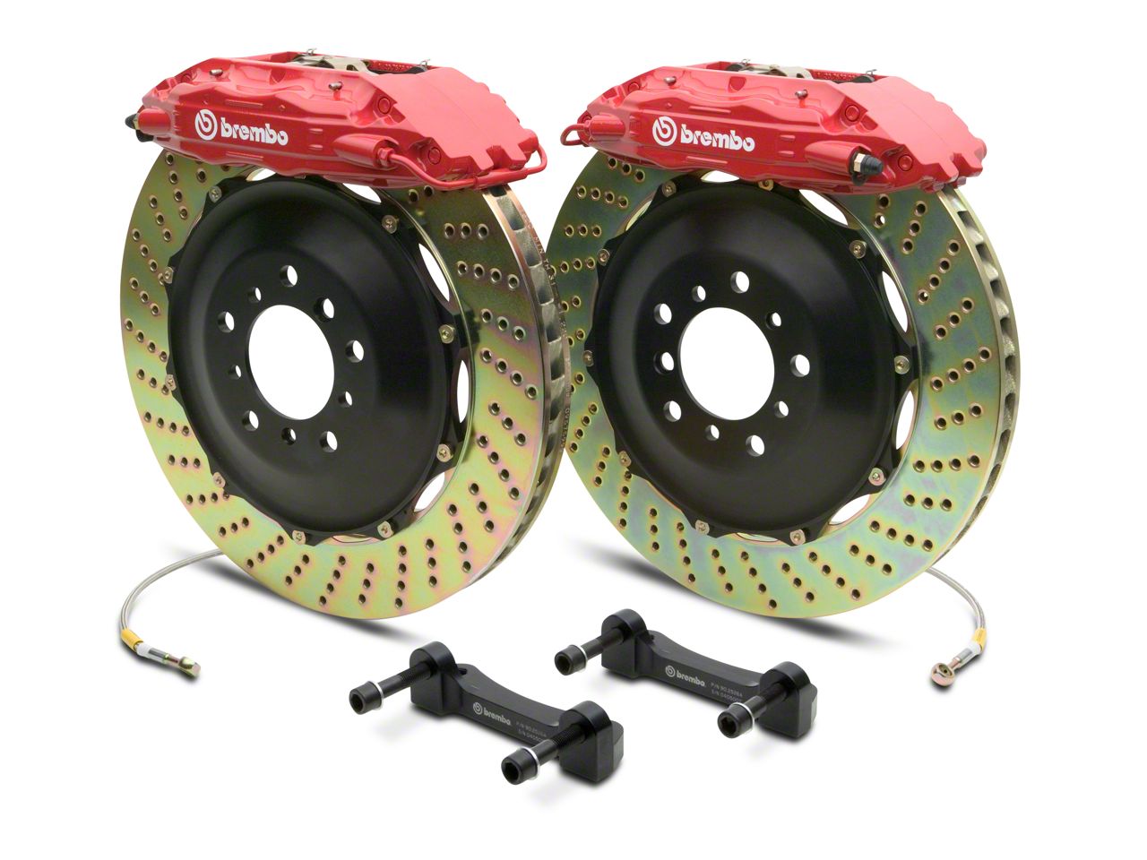 Power Meets Style. Get everything you need for a full, professional installation in this Brembo GT Series 4-Piston Rear Brake Kit - 2-Piece Cross Drilled Rotors - Red rear brake kit. Parts include all necessary fastener hardware, high-performance brake pads, metal braided hoses, and special cast aluminum calipers, which are rigid yet lightweight and feature a vibrant, stylish red finish for the perfect touch of style to your vehicle.