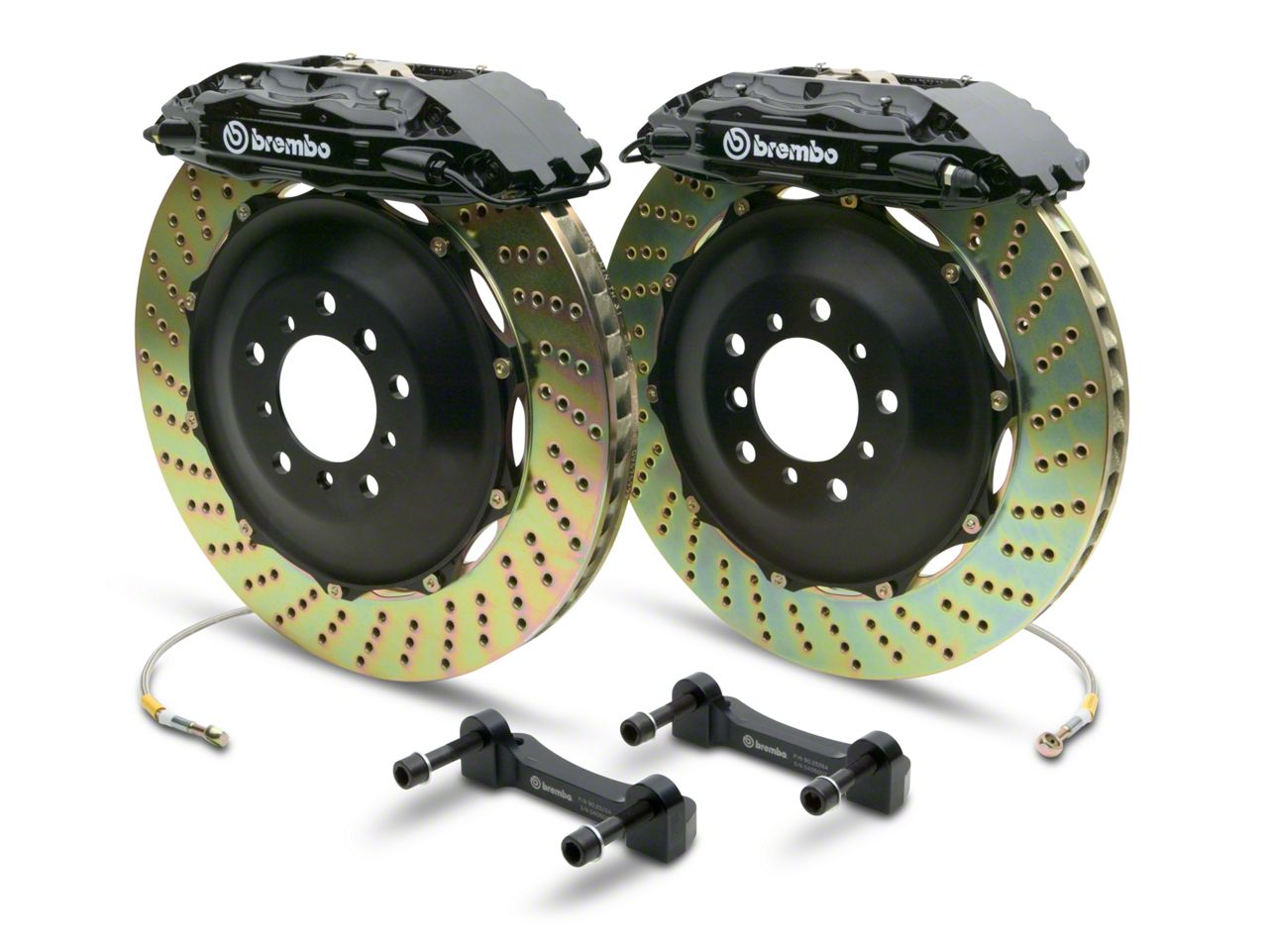 Application. The Brembo GT Series 4-Piston Rear Brake Kit with 2-Piece Cross Drilled Rotors in Black is designed for use on 2014-2018 GMC Sierras.