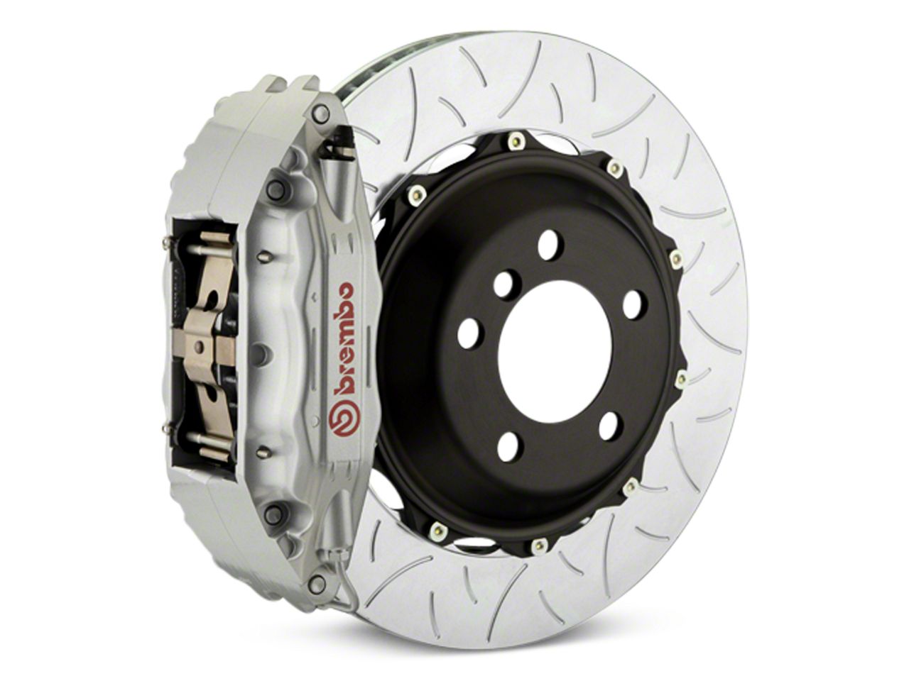 High-performance Design. The Silver Brembo GT Series 4-Piston Rear Brake Kit offers 3 slotted rotors along with a 48 Vane to cool down.