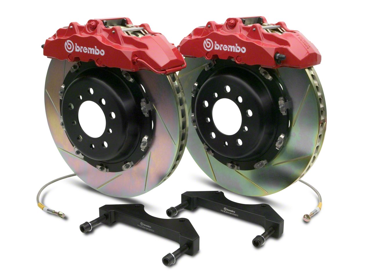 Gain More Control Over Your Truck. Your brakes are essential to your safety when driving. When participating in motorsports, your brake performance is even more important. This Brembo GT Series 8-Piston Front Brake Kit - 2-Piece Slotted Rotors – Red is designed to improve overall brake performance, including balance, heat dissipation, fade resistance, and more.