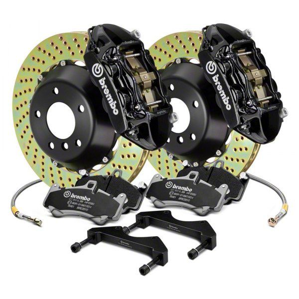 Rear Big Brake Kit. This GT Series Rear Big Brake Kit includes a pair of 4-piston Brembo rear calipers, 2 Brembo cross-drilled rear rotors, a set of rear brake pads, Goodridge braided stainless steel lines, mounting brackets, and all the hardware required for installation.