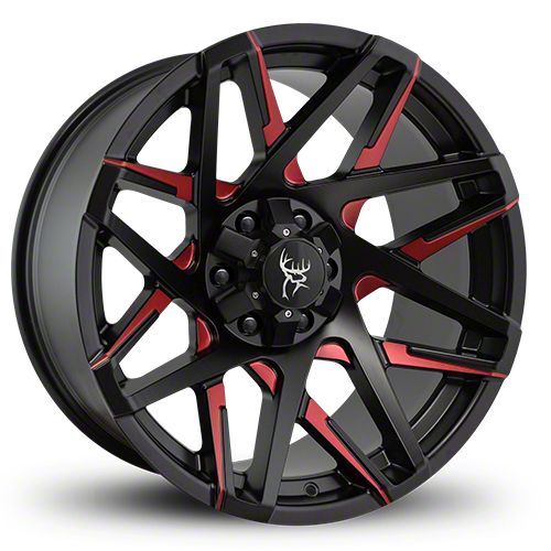 The 20x10 Buck Commander Canyon Satin Black Milled Face with Red Clear Wheel underwent a thorough finishing process to make sure the wheel not only looks great, but that it can also handle the rigors of driving.