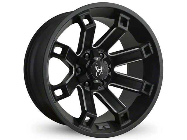 Buck Commander Hollow Point Satin Black Milled Spokes Wheel; 20x10; -35mm Offset. The Buck Commander Hollow Point Satin Black Milled Spokes Wheel offers a striking balance of style and refinement. Its unique design accentuates the vehicle's aesthetic, while the premium construction underscores its robust nature. This wheel is a perfect choice for those seeking both elegance and a strong visual statement.