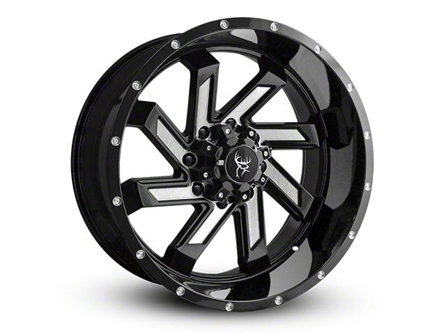 Buck Commander SAW Gloss Black Milled Face Wheel; 20x10; -25mm Offset. The Buck Commander SAW Gloss Black Milled Face Wheel offers a striking balance of style and refinement. Its unique design accentuates the vehicle's aesthetic, while the premium construction underscores its robust nature. This wheel is a perfect choice for those seeking both elegance and a strong visual statement.