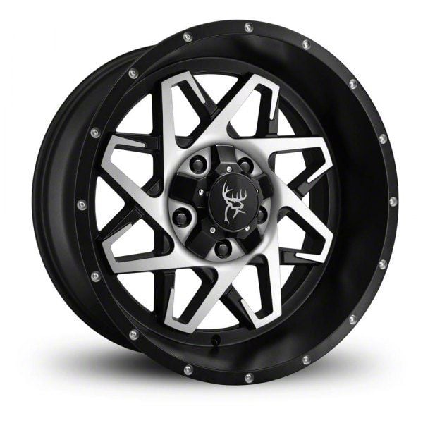 This 20x9 Buck Commander Caliber Satin Black Machined Face 6-Lug Wheel is completed in a high-quality satin black machined finish with double dark tint for a striking appearance that will be the envy of everyone. There's a durable clear coat that helps protect against driving hazards.