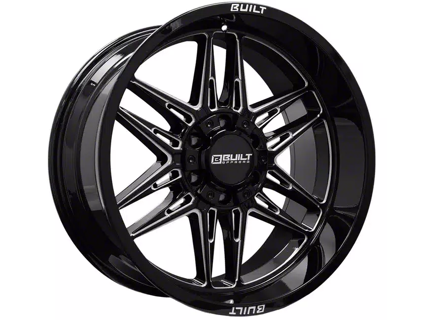 This 22x12 Built Off Road BTO-5 Gloss Black Milled 6-Lug Wheel is completed in a high-quality gloss black finish with steel milled accents that will create a striking appearance. There's a durable clear coat that protects against driving hazards.