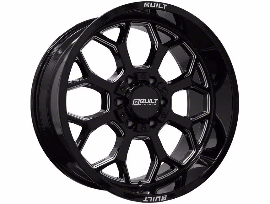 This 20x9 Built Off Road BTO-1 Gloss Black Milled 8-Lug Wheel is completed in a high-quality gloss black finish with steel milled accents that will create a striking appearance. There's a durable clear coat that protects against driving hazards.