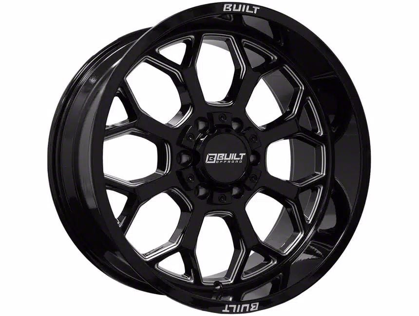 Application. This Built Off Road BTO-1 Gloss Black Milled 6-Lug Wheel; 20x9; 0mm Offset, with a backspacing of 5 Inch, 127mm and bolt pattern of 6 x 139.7mm (6 x 5.5-Inch), ensures precise alignment and stable driving. Designed to fit 2019-2026 Silverado 1500 models, this wheel is sold individually.