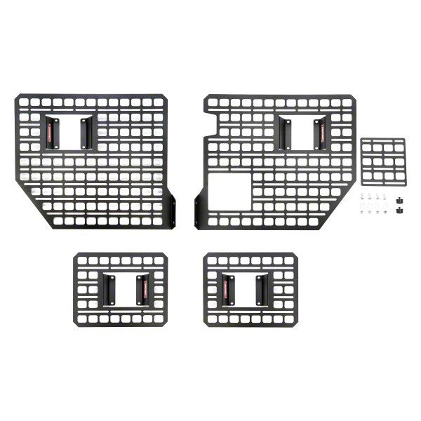 Black Powder Coating. Designed with durability in mind, the MOLLE Rack System is constructed from robust 1/8-inch-thick steel, ensuring it can withstand the harshest off-road adventures. The black textured powder coating not only adds to its rugged aesthetics but also provides superior corrosion resistance.