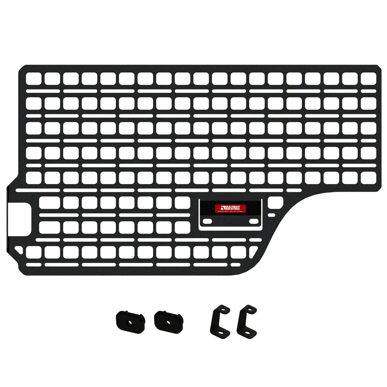 Efficient Bed Storage Solution. The BuiltRight Industries Bedside MOLLE Rack System is a rugged and versatile storage upgrade for the 2019–2023 Ford Ranger. Designed for the driver rear panel, this system allows you to easily organize, access, and secure tools, gear, and recovery equipment while maximizing bed space and keeping items safely in place, whether on the trail or at the job site.