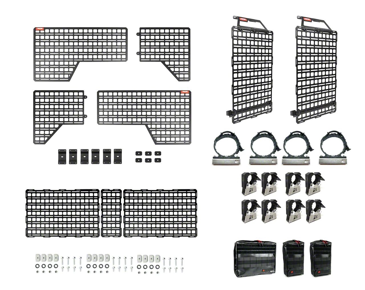 Complete Organization. Keep your gear organized and clutter-free with ease, thanks to the Gear Organization MOLLE System (Pro Kit) from BuiltRight Industries. This comprehensive kit includes a full set of Bedside Rack System MOLLE Panels and a pair of Rigid Seat Back MOLLE Panels, offering you maximize storage space for your essentials.